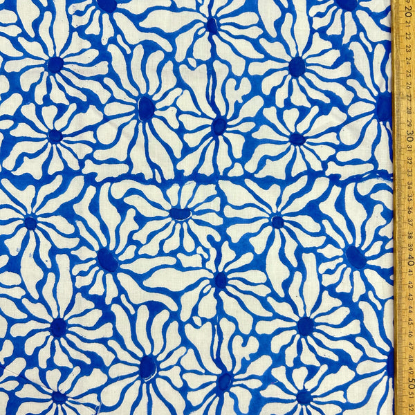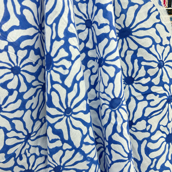 Block Print White and Royal Blue Flowers