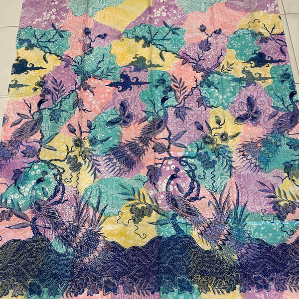 (Hand-stamped) A Pair of Peacock on Tree Multi